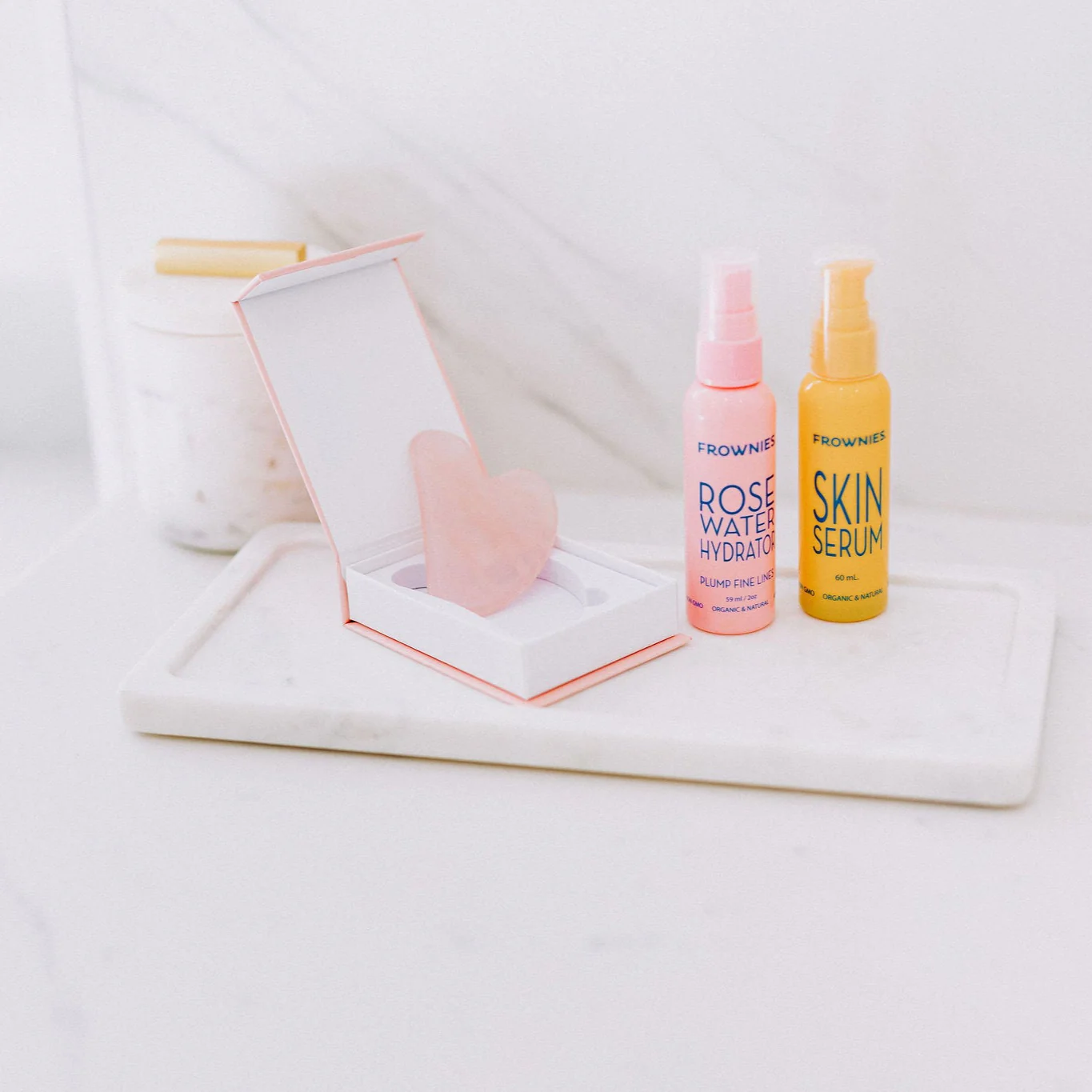 Our Frownies Skin Serum is specially formulated to provide the perfect slip and glide for Gua Sha Facial Massage. Rich with ceramides it ensures a smooth and seamless surface for gua sha, enhancing the effectiveness of the massage while delivering rich lipids and nutrients to the surface of your skin.